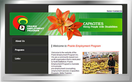 This beautiful website provides website visitors with information about the programs and services that the Prairie Employment Program offers.