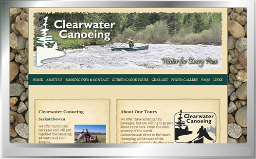 The eye catching design makes good use of photos supplied by the customer. Everytime Clearwater Canoeing staff contact M.R. Website, they comment on how much their clients love the website. The site features a custom built photo gallery that displays a picture randomly on the home page.